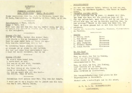 Funeral Programs / Begrafnisbriewe