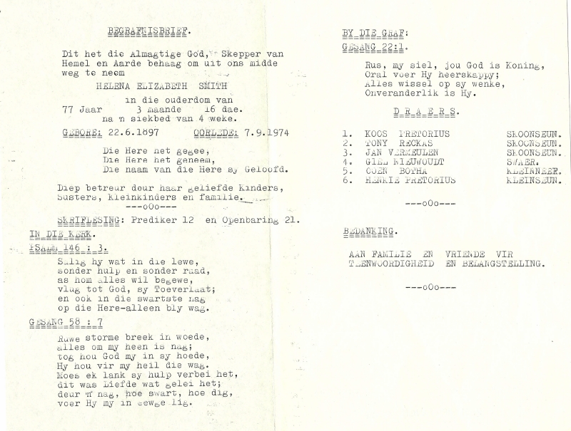 Funeral Programs / Begrafnisbriewe