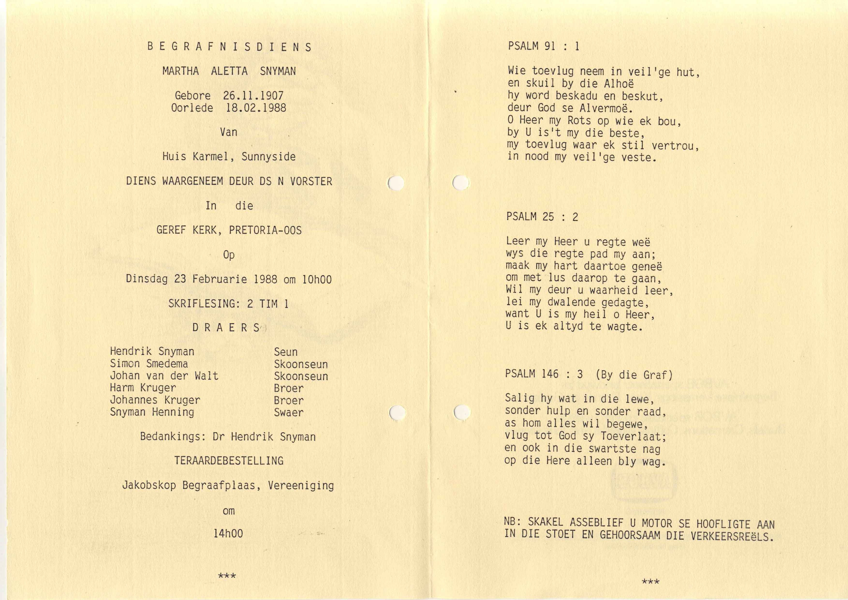Funeral Programs / Begrafnisbriewe