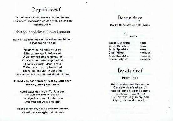 Funeral Programs / Begrafnisbriewe