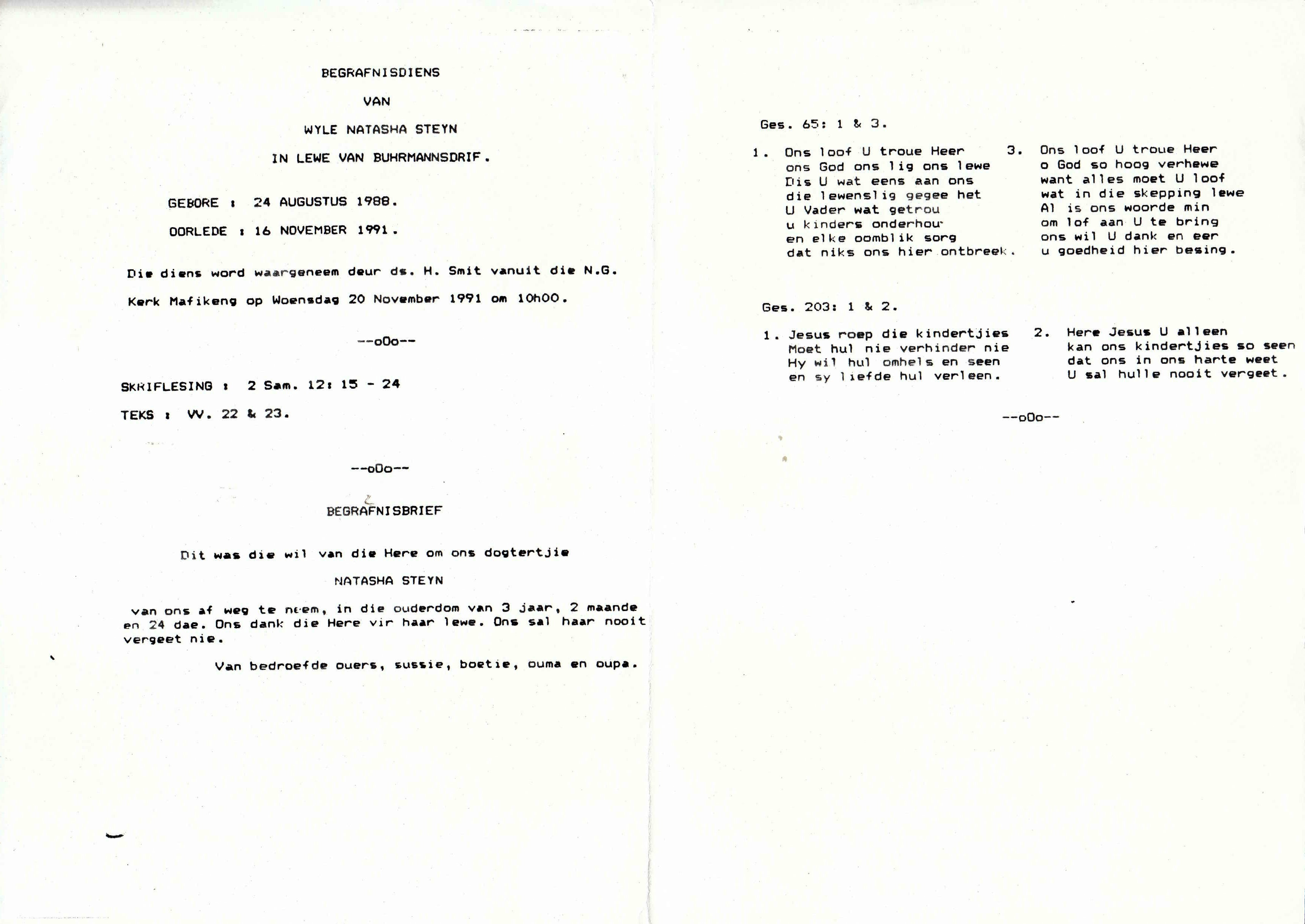 Funeral Programs / Begrafnisbriewe