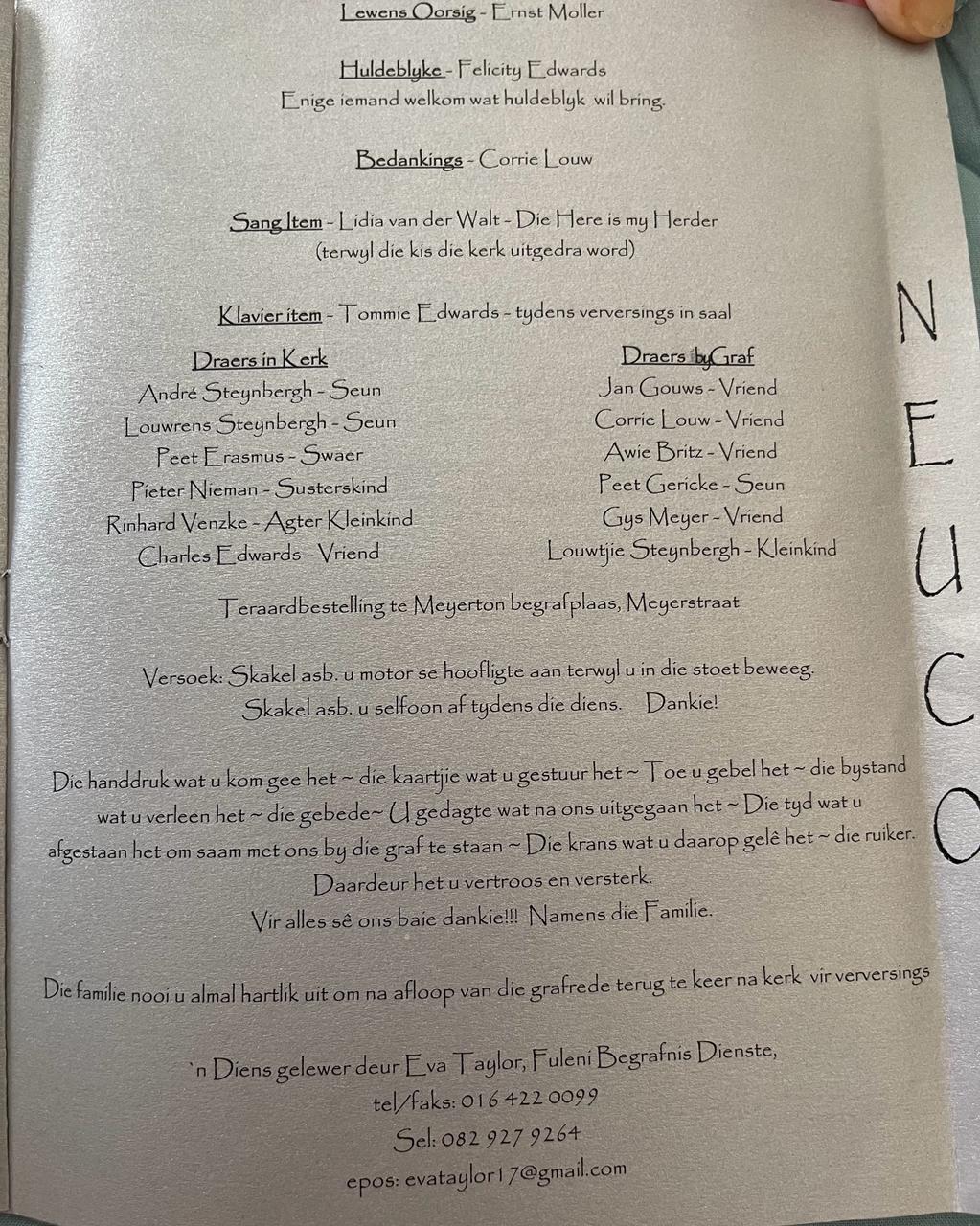 Funeral Programs / Begrafnisbriewe