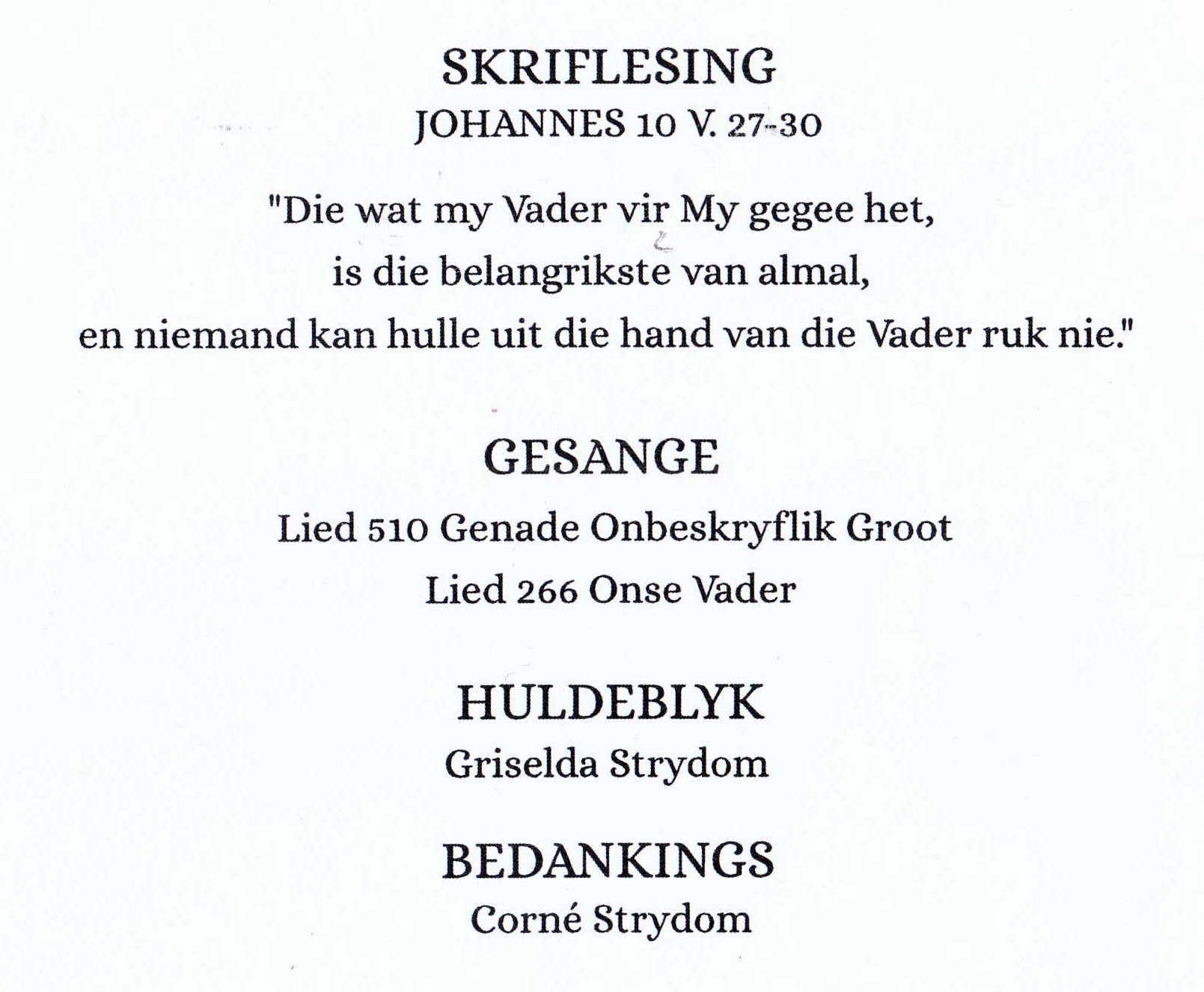 Funeral Programs / Begrafnisbriewe