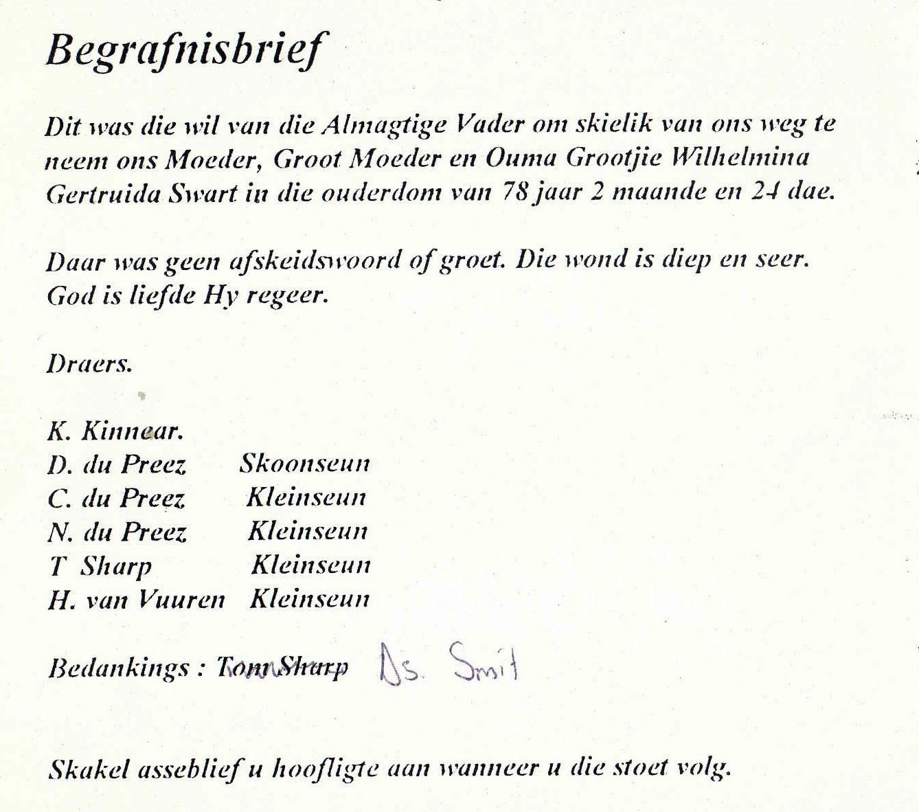 Funeral Programs / Begrafnisbriewe