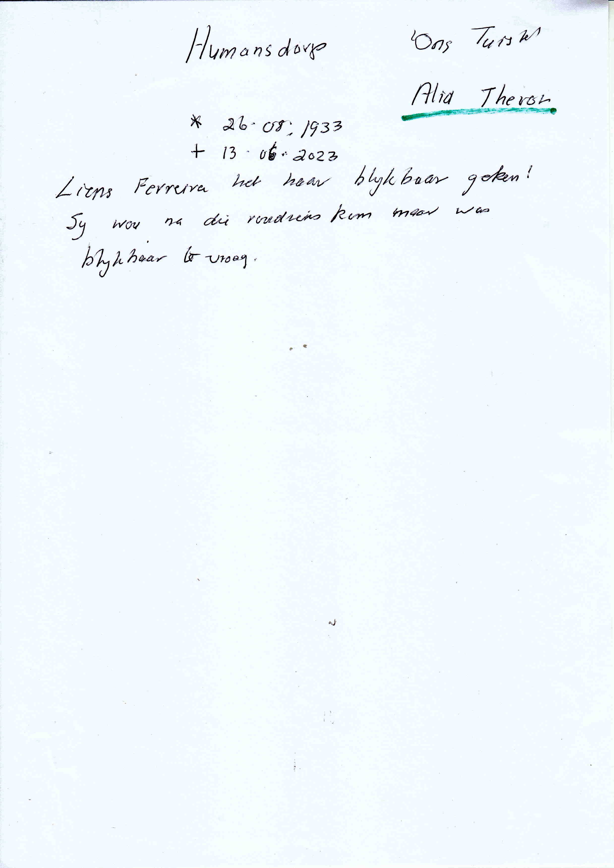 Funeral Programs / Begrafnisbriewe