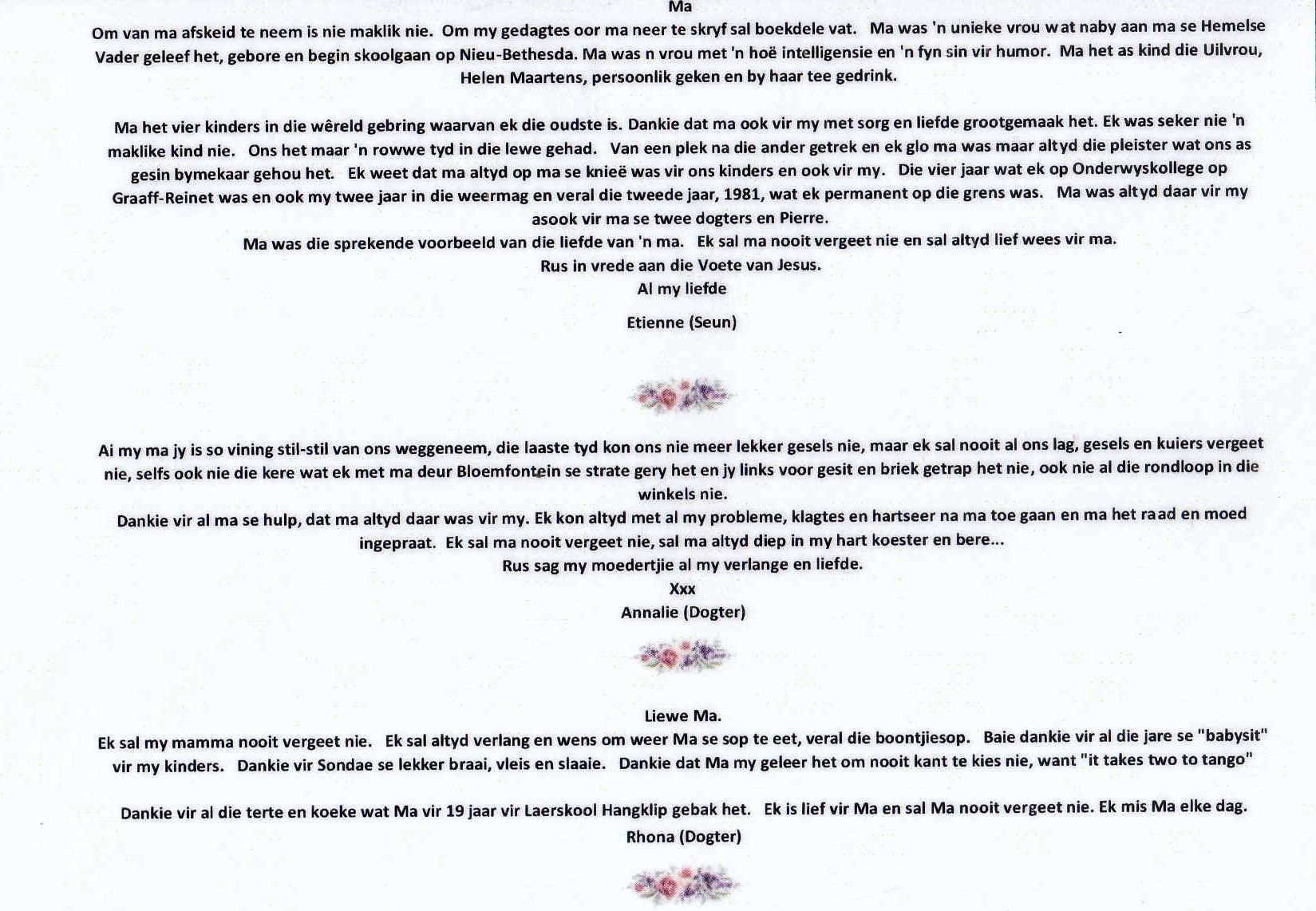 Funeral Programs / Begrafnisbriewe