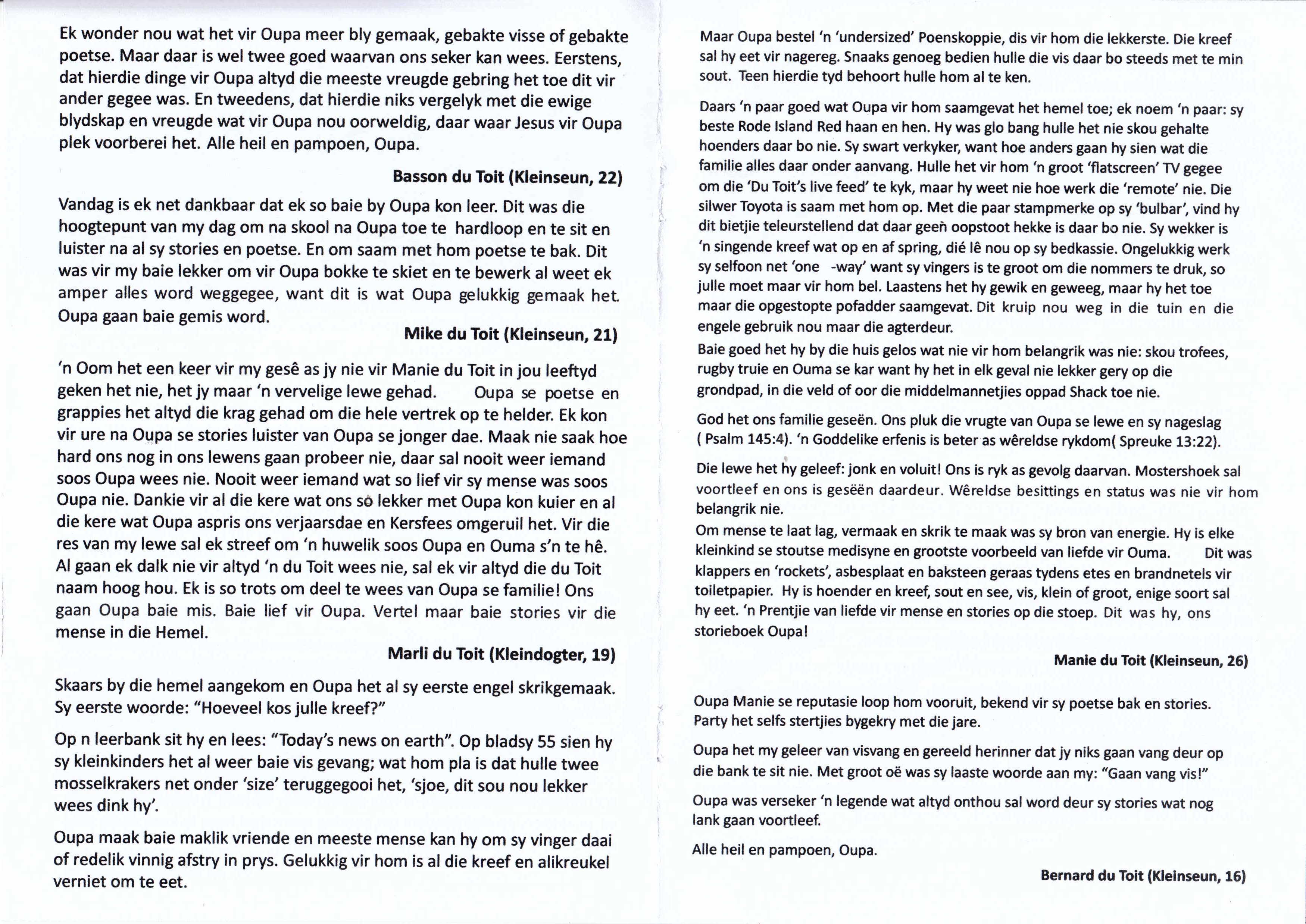 Funeral Programs / Begrafnisbriewe