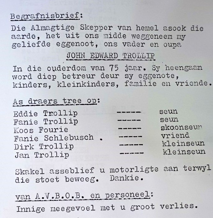 Funeral Programs / Begrafnisbriewe