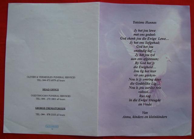 Funeral Programs / Begrafnisbriewe