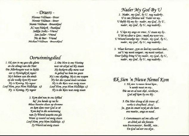Funeral Programs / Begrafnisbriewe