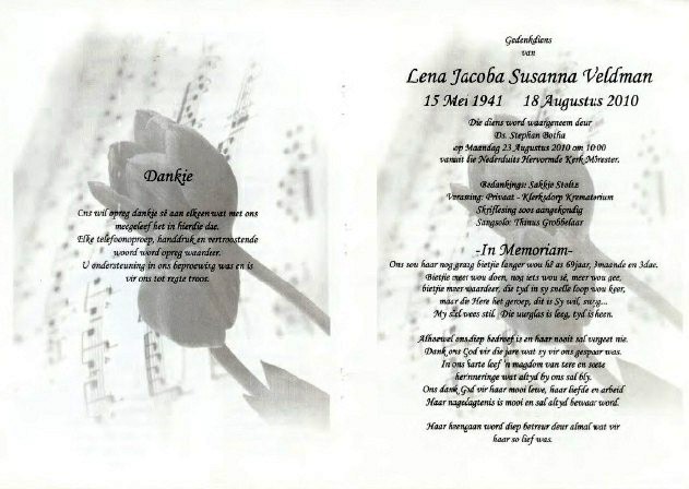 Funeral Programs / Begrafnisbriewe