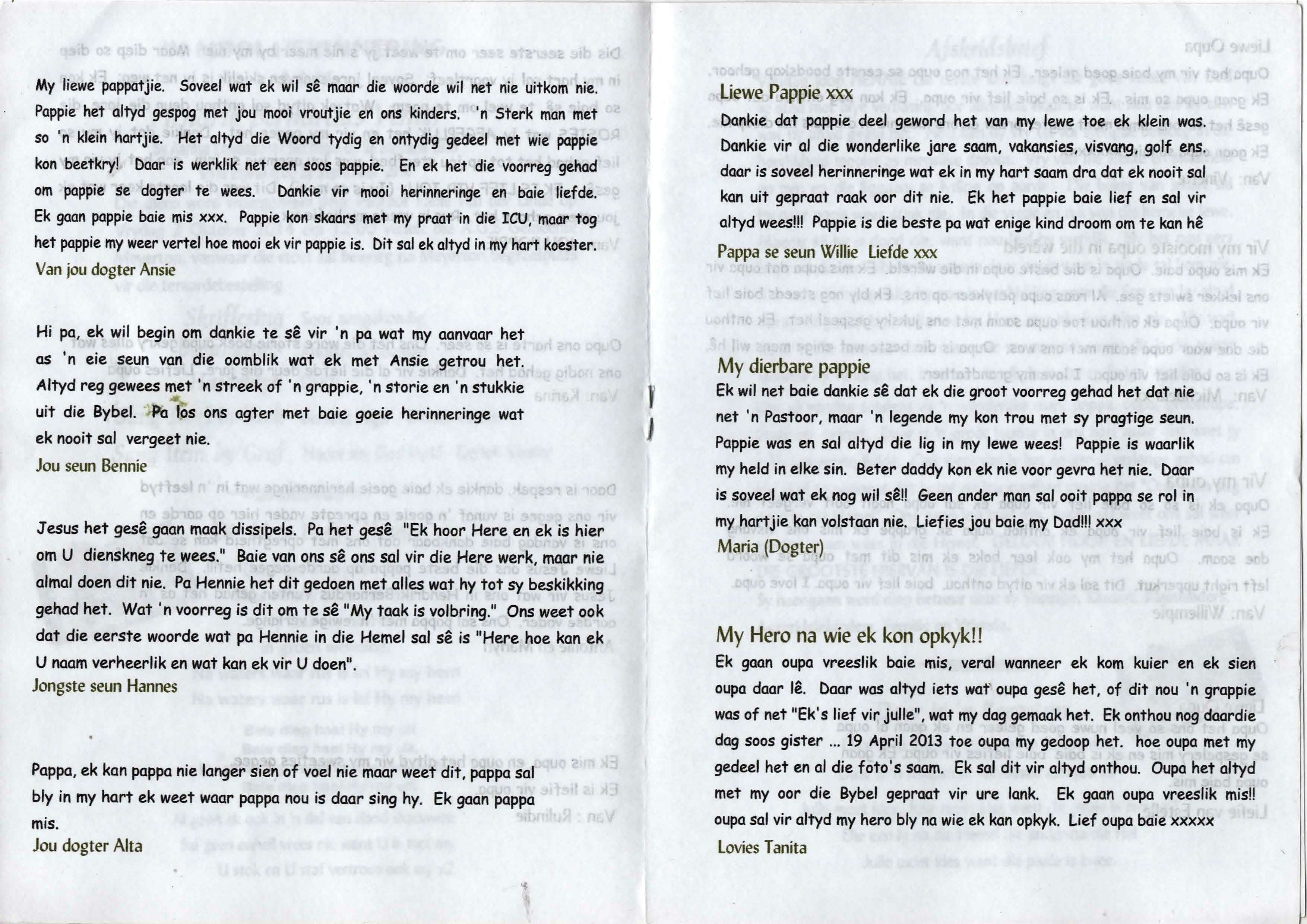Funeral Programs / Begrafnisbriewe