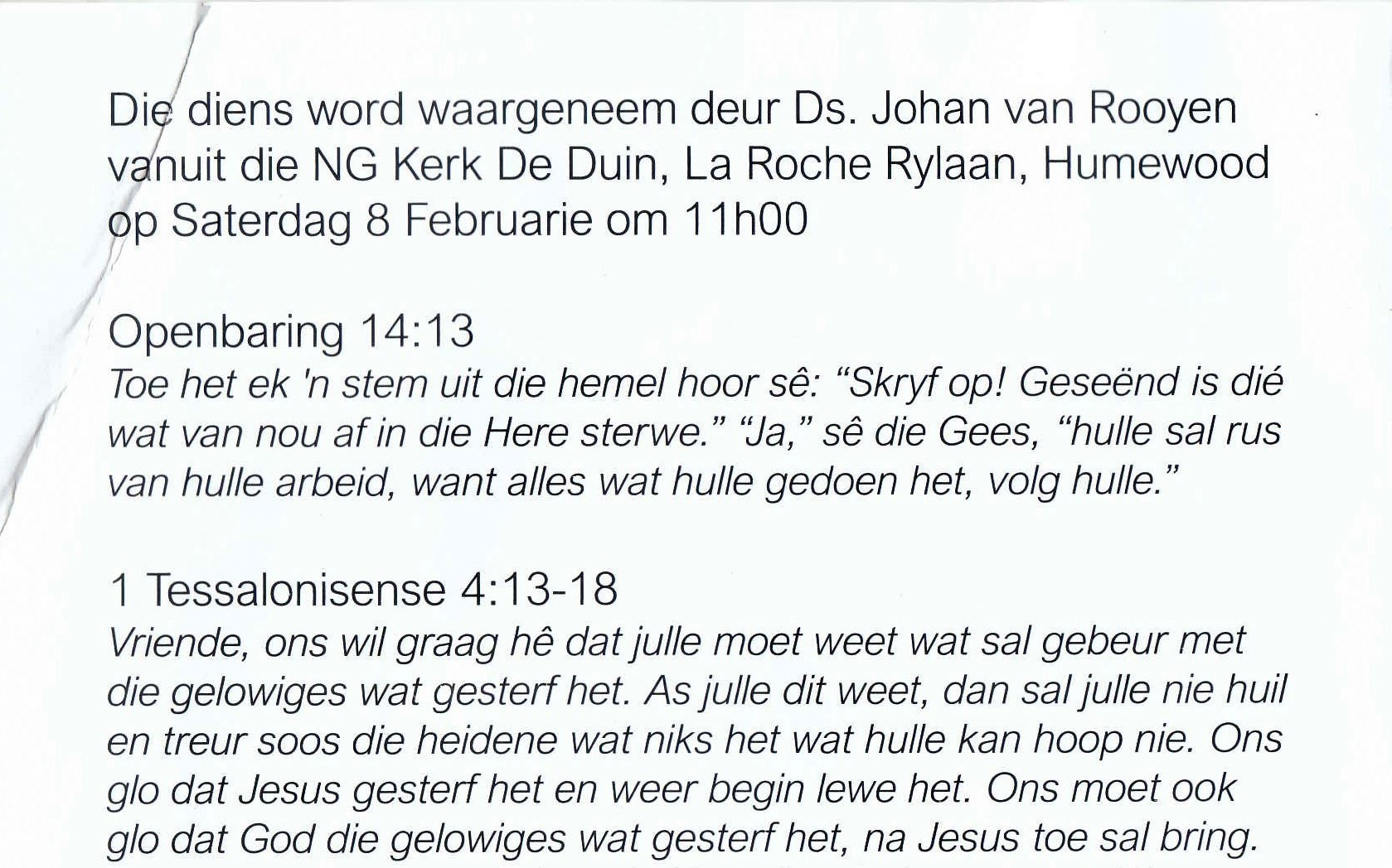 Funeral Programs / Begrafnisbriewe