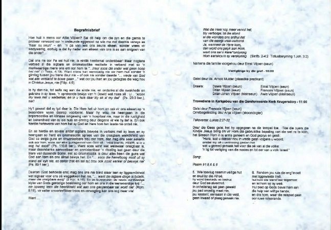 Funeral Programs / Begrafnisbriewe