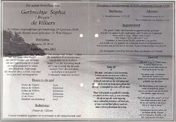 Funeral Programs / Begrafnisbriewe