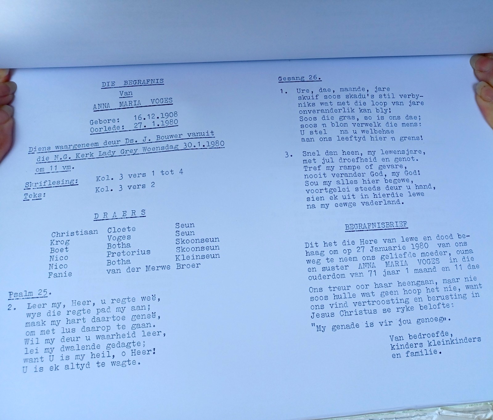 Funeral Programs / Begrafnisbriewe