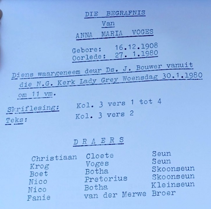 Funeral Programs / Begrafnisbriewe