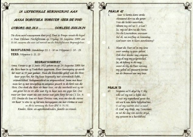 Funeral Programs / Begrafnisbriewe