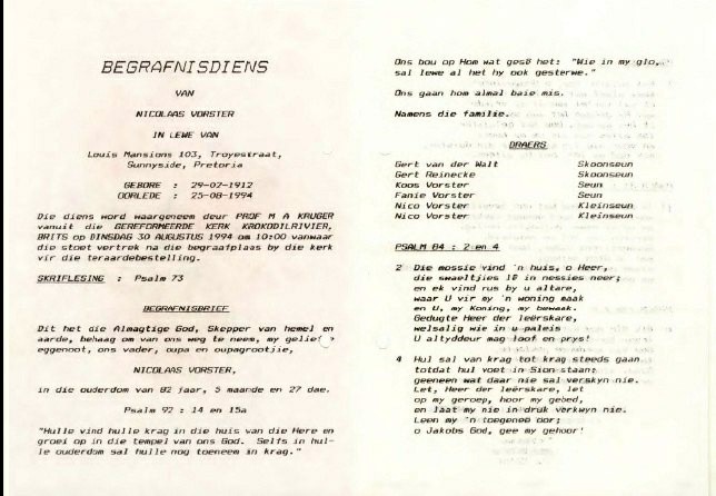 Funeral Programs / Begrafnisbriewe