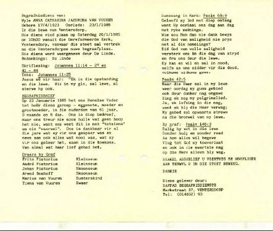 Funeral Programs / Begrafnisbriewe