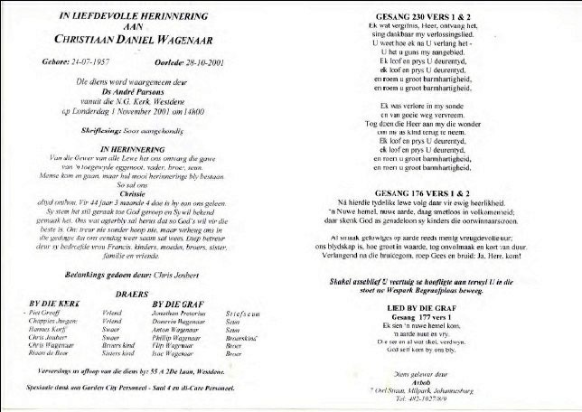 WAGENAAR-Christiaan-Daniel-Nn-Chrissie-1957-2001-GGSA.NoordWesVersameling-M