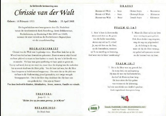 WALT-VAN-DER-Chrissie-nee-VanWyk-1933-2008-GGSA.NoordWesVersameling-M