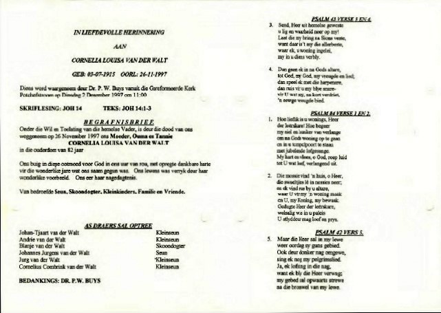 Funeral Programs / Begrafnisbriewe