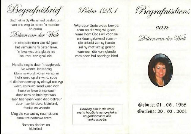 Funeral Programs / Begrafnisbriewe