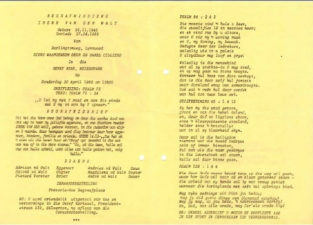 Funeral Programs / Begrafnisbriewe