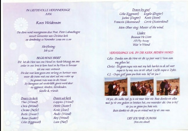 Funeral Programs / Begrafnisbriewe