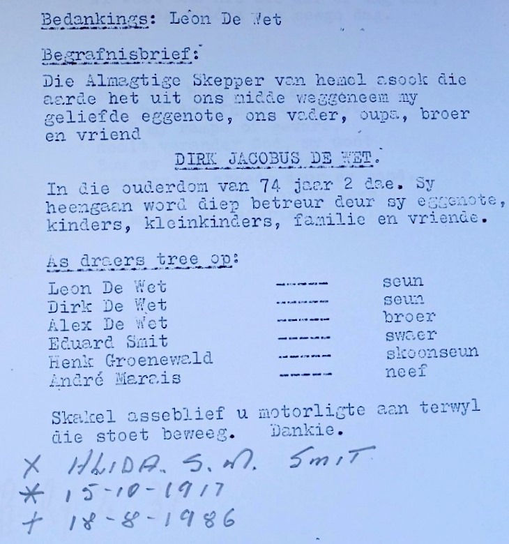 Funeral Programs / Begrafnisbriewe