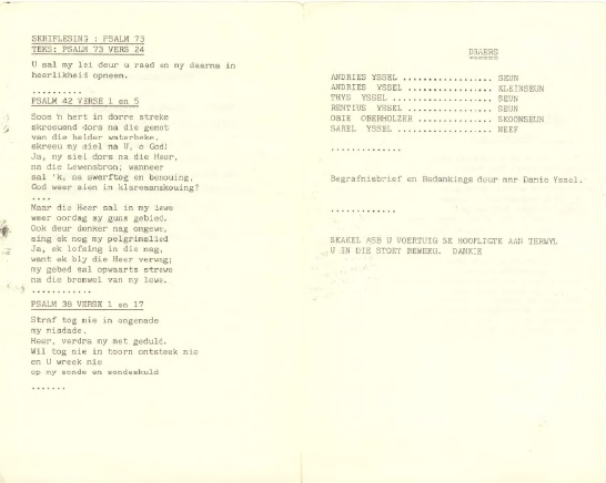Funeral Programs / Begrafnisbriewe