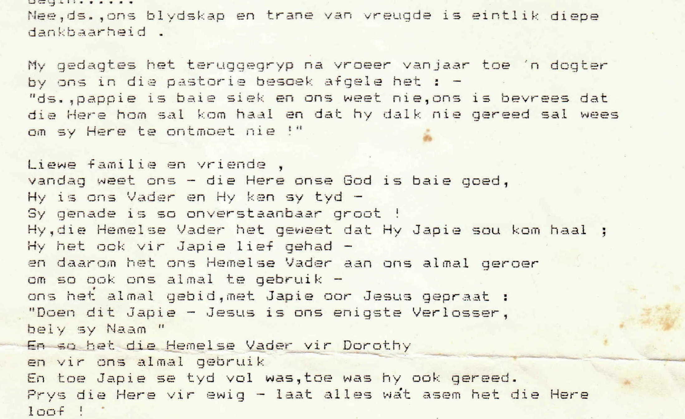Funeral Programs / Begrafnisbriewe