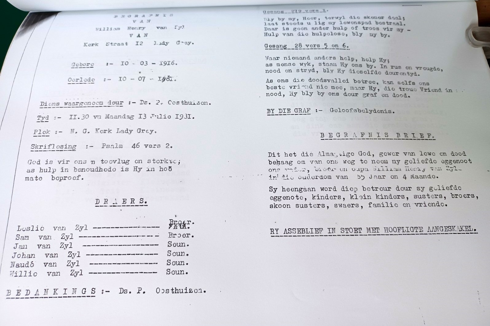 Funeral Programs / Begrafnisbriewe